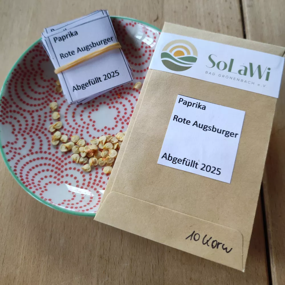 Dieses Jahr haben wir Samen von der schwarzen Stockrose, Kapuzinerkresse, Paprika Flynn und roter Augsburger und Feuerbohne Preisgewinner abgepackt.