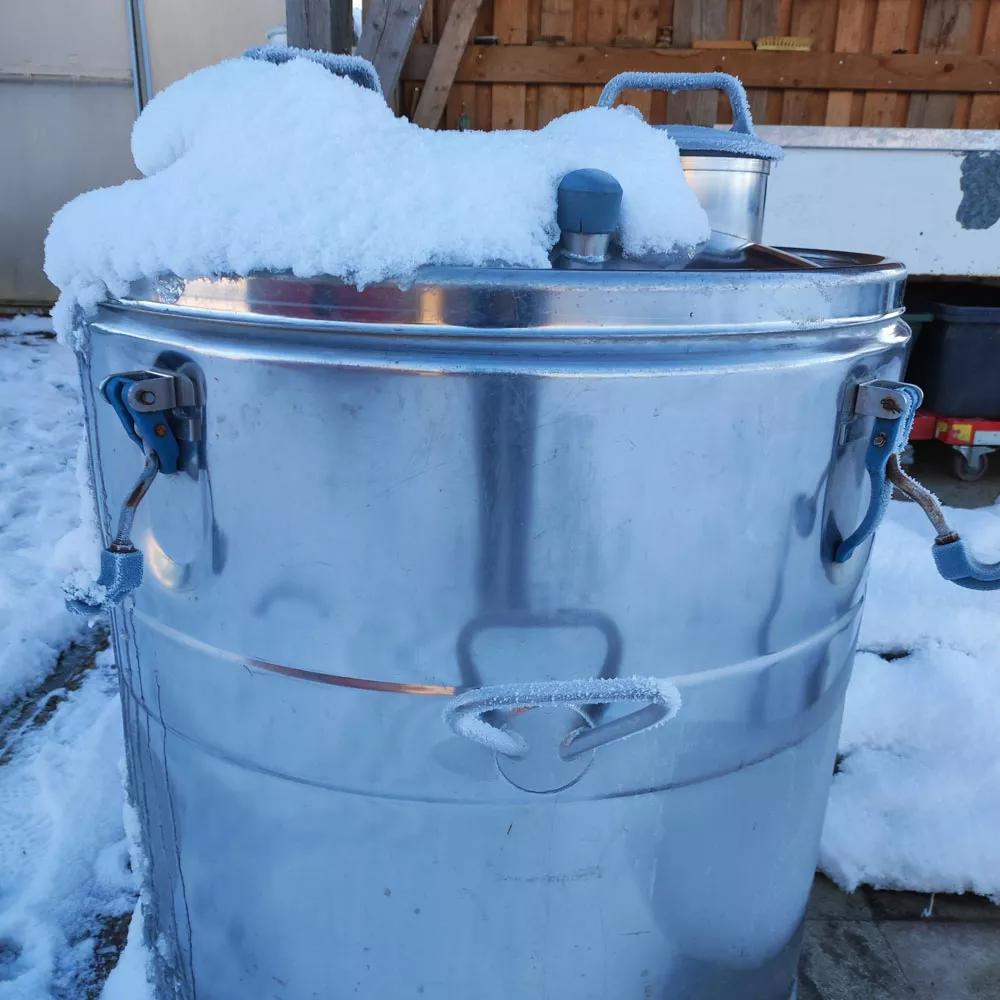 Ein Teil davon steht noch in den Fässern im Vorratsraum und wird in unseren 1. Gemüsekisten 2026 ein Plätzchen finden.