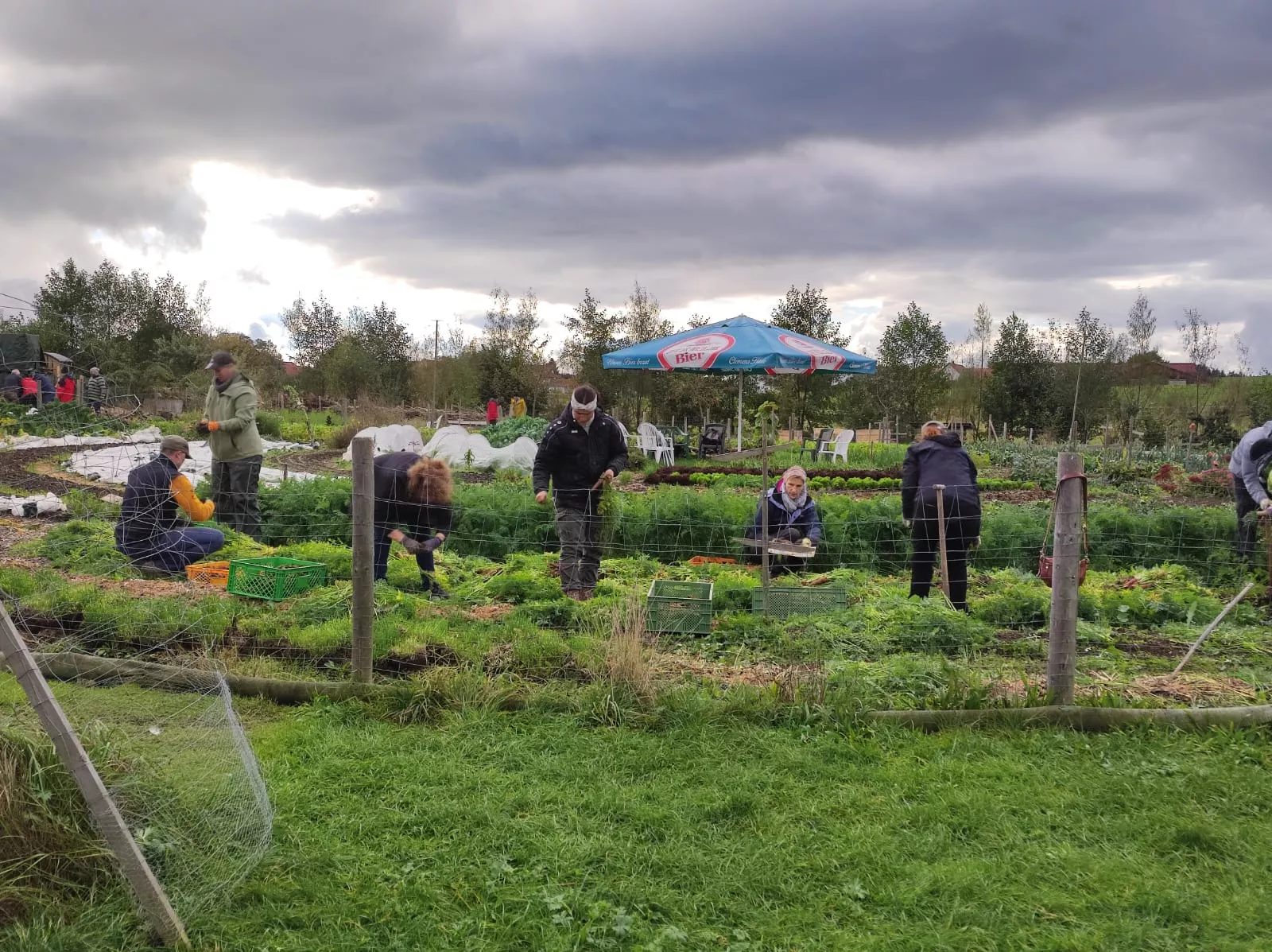 Für unser gemeinsames Mittagessen wurde frisch geerntetes Gemüse aus dem Garten zu einer leckeren Gemüsesuppe über dem Feuer verarbeitet. Im Garten selbst wurden viele Kisten Möhren und rote Bete zum Einlagern geerntet.