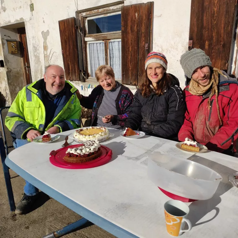 mit gemeinsamem Mittagessen vom Mitbringbüfett nach getaner Arbeit.